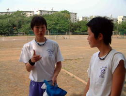 そんな「世界の利根川」であるにもかかわらず、先生は私のような未熟な顧問を非常にかわいがってくれました。そして私が自分のチームを練習に連れて行くと、本当に手取り足取り指導をして下さいます。上の写真でもわかるように、この指導をして下さっている間にも、チームは兵庫県からわざわざやってきた強豪チームと練習試合をしているのです。本当に有り難いことです。厚木商業高校の選手たちは本当によくしつけられていて、いつ行っても歓迎してくれます。私は自信を持って言い切ることができるのです。「厚木商業高校は技術的にも精神的にも日本一です」と。
