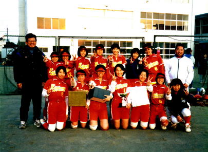 高校に進学してからもソフトボールの名門校(向上高校や県立厚木商業高校・明倫高校・相模女子大高等部・明倫高校・立花学園高校など)で活躍してくれた選手もおり、厚木商業高校に進学した選手は、利根川監督の下全国優勝を果たしました。また、私が担任した最初のクラスからは柳田美幸という前日本女子サッカーチームの代表選手が出て、昨夏のアテネオリンピックで大活躍してくれました。