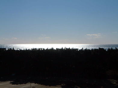 茅ヶ崎海岸からまっすぐ南に目をやると、もやってさえいなければ大島の島影がくっきりと見えるのです。そして春の日差しを反射してきらきら光る水面はまさに心を温かくしてくれます。