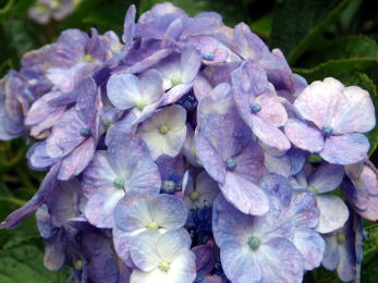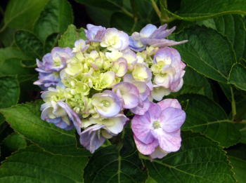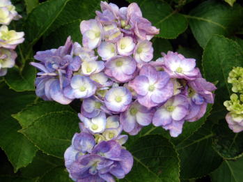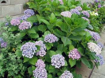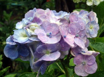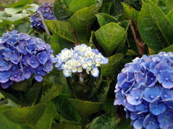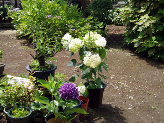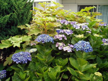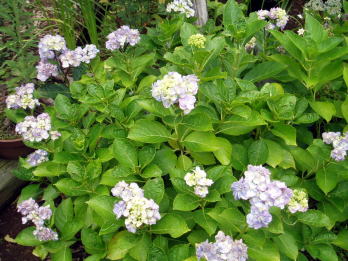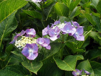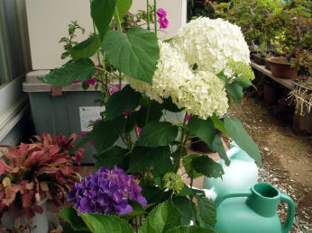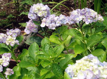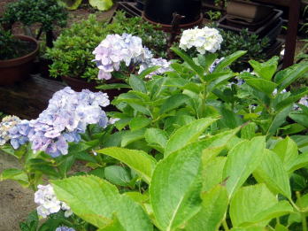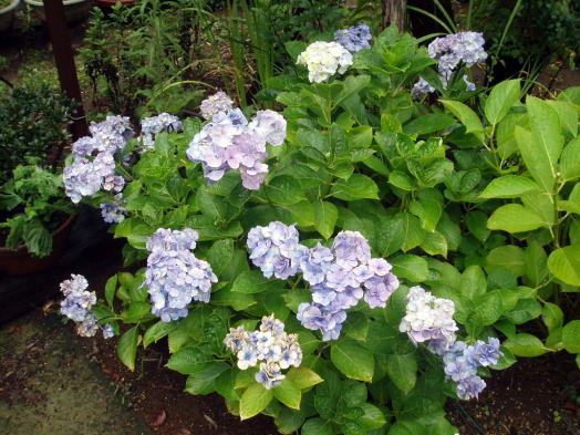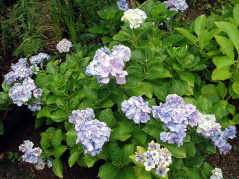 庭の紫陽花はもうほとんど剪定を済ませてしまいました。こんもりと森のようになっていた柏葉紫陽花もスポーツ刈り状態。今年は不調だったので、ぜひ来年はたくさんの美しい花を咲かせてもらいたいです。我が家の庭ではいま遅咲きの姫紫陽花が、きれいな薄紫色の花を披露してくれています。マリンブルーもまだきれいに咲いている数本の花だけは残してあります。あと1週間もすれば全ての紫陽花の剪定作業が完了することでしょう。そして、今年開成町の「あじさい祭」で買ってきた、アナベルとベネチアの鉢植えも、庭の土に移す予定です。(2007年7月15日・台風の合間に撮影)