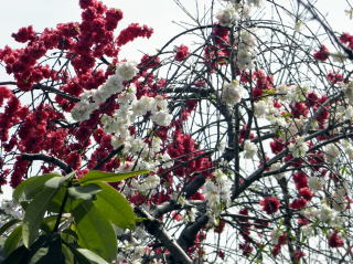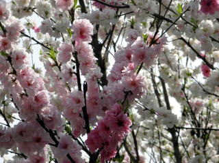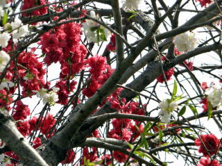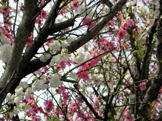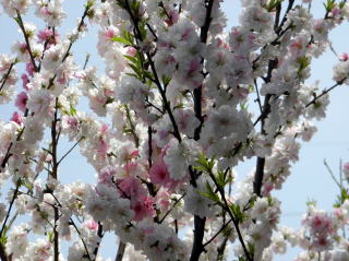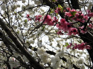桜の花が、春の強い風に吹かれて散り始めた中、桃の花はしっかりと花びらをつけて頑張っていました。茅ヶ崎市の赤羽根山の麓には、畑がたくさんありますが、その縁に植わっている桃の木です。また、別の箇所で撮影した写真も混じっていますが、いずれにしても目を奪われるような美しさですね。桃の花は、綿帽子のように幻想的に見えます。皆さんは桜と桃とではどちらの花が好きですか?私は、桃の方に惹かれますかねえ。ちなみに、桃の花は純白・薄桃・桃・真紅と4種類の色がありました。一つの枝に混在していることも。(平成23年4月16日・昼撮影)