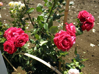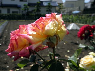 私がよく立ち寄るコンビニエンス・ストアのすぐそばに、大きな畑があります。その畑の道路沿いには、美しい大輪の薔薇がたくさん植えられている。今日は、台風一過なのできれいな花びらも大分落ちてしまったようですが、それでも美しさを誇っていました。最近は、家の庭に薔薇を栽培する家庭が増えています。ピンクの薔薇と真紅の薔薇が目立ちます。中には薄桃や純白の薔薇も混じっている。あまりいいことがないこの時代にあって、誰もが花の美しさや動物のかわいらしさに、癒しを求めるのでしょうか。(2011年5月30日・昼前撮影)