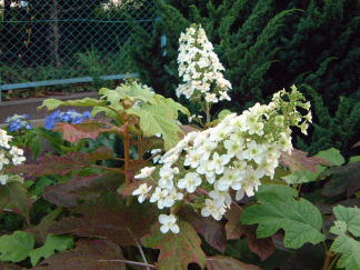 我が家の庭に咲くあじさいの一群。その中でもひときわ異彩を放っているのが、この「柏葉あじさい」です。小田原開成町の「あじさい祭り」で買ってきた鉢植えを庭に植えたら翌年には巨大化してしまいました。しかしこのすずらんのような花を見てあじさいだとわかる人はほとんどいないでしょうね。