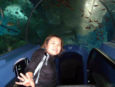 上の2枚の写真は横浜八景島シーパラダイスご自慢のトンネルです。水槽の下をくぐっているので、天上と左右は魚の群れを間近に見ることができるんです。まるで竜宮城の中を散歩しているような気分。妻の佳代子が気に入ってしまって、私は同じトンネルを2度もくぐる羽目になりました。でも本当に気持ちよかったですよ。この八景島シーパラダイスには他にも愉快な動物たちがたくさんおりますし、島全体が南国の雰囲気を醸し出していて、中を歩くだけでも最高の気分転換になるでしょう。レストランなども豊富で、一日いても決して飽きません。天気が良ければ、夜は花火も楽しめるんです。混み合ったTDLに行くのが面倒なら、近場で八景島がおすすめです。左の写真は日記にも紹介した新宿西口の風景です。ちょうど夕暮れ時だったので、ネオンサインや車のライトがきれいですね。都会の夜は不思議な魅力にあふれています。
