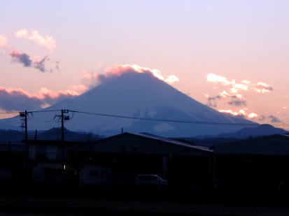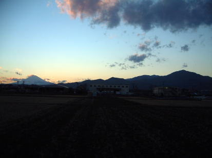 夕暮れの富士山と大山の姿です。もう少し時間が遅くなればきれいな紫色に染まるのでしょうが、それはデジカメだと上手に画像にできないかも知れません。それに風が冷たくて待っていられませんでした。これは伊勢原から撮影したものですが、私の住んでいる茅ヶ崎からも非常に美しい姿を望むことができるのですよ。(2005年3月25日撮影)