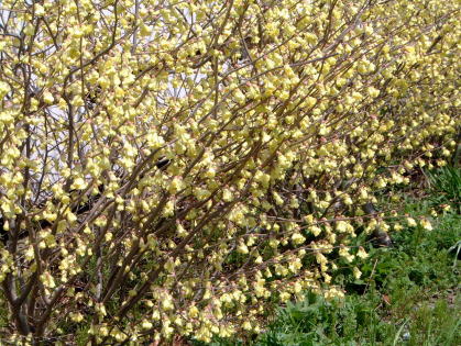 もう龍馬の散歩を忘れてあちこちの春の素顔を撮影してみました。すぐ上の花は「こぶし」でしょうか。その左の白い花も同じように「こぶし」ですよね。椿はすぐにわかりますが、始めて目にしたのが左側にある小さなスズランのような黄色い花です。この花がずっと生け垣に沿って植えられていて、とてもさわやかな光景を見せてくれていました。背丈は50センチほどなのですが、小さな釣り鐘のような黄色い花が何とも言えず可憐です。風水では黄色は「金運や幸運」をもたらす色。私の家でも黄色い招き猫を置いていますが、この花を庭に植えたら金運が上昇するでしょうか。