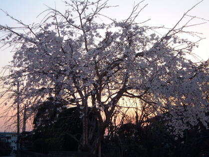 最近は庭を花できれいに飾るお宅が本当に多くなりました。左の写真は近所のお宅ですが、ユキヤナギと黄色い花の取り合わせは実に美しいですね。そして右の写真は夕暮れ時の「しだれ桜」の写真です。私はずっとこれは散りかけた梅の木だとばかり思っていたのです。ところがテレビの天気予報で桜が満開になったと聞いて、テレビの映像を見てはっとしました。そうですこれはしだれ桜だったのですね。(2005年4月5日夕方撮影)