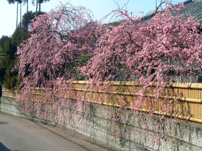 しだれ梅が見事でしょう?このおうちも我が家の親類でやはり石山さんと言うのですが、塀の外側にきれいに梅がしだれるようにしてあって、竹垣とぴったり合ったその光景はまるで京都の街中を歩いているかのような気分にさせてくれます。散歩をしていると、いろいろなお宅の庭に白梅と紅梅が咲き誇っている姿が目につきますね。途中で会った猫ちゃんはとてもなつこくて、三匹いたうちの一匹を写真に収めました。(2006年3月5日朝撮影)