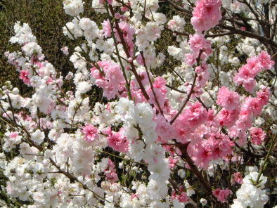 これは桜なのでしょうか、それとも桃?でもこの時期に桃は少し遅すぎますよね。でも桜にしてはちょっと枝振りが違うような。よく見かける木なので、ご存知の方はどうぞ名前を教えてください。昔から理科は苦手だったので、花や木の名前はちんぷんかんぷんでわかりません。