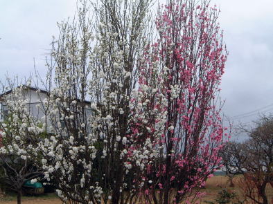 海老名の宮澤病院に父は入院しているのですが、いつも父の見舞いには車で出かけます。茅ヶ崎の自宅からだいたい30分弱で着いてしまうのです。その途中の寒川町から海老名にかけては、田園地帯が広がり、今の時期は海老名のイチゴ狩りに多くの人が訪れます。車を運転していてふと開けた畑を見ると、鮮やかな白とピンクの花が並んで咲いているのが目に入りました。残念ながら天気が良くなくて忠実に色を表現できていないと思いますが、それはそれは美しい花々でした。