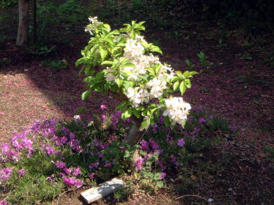生前の父は「皐」が大好きでした。一時は300鉢くらいの皐の面倒を見るのに、もう一日中作業をしていたほどです。今の新しい家に越すときに、いろいろな事情があって父はほとんどの皐を処分してしまいましたが、残った数鉢の皐は今では母が丹念に面倒を見ています。でも、豪華な花をいっぱいにつけさせるのは非常に難しいことなのです。まったく花をつけない皐もあります。冬場の手入れにコツがあるようですが、それは皐を扱い慣れた人でなければわかりません。それでも、いくつかの鉢がきれいな花をつけてくれました。一方、紫陽花の方はだいぶ成長して、特に柏葉紫陽花はだいぶ頭の方の花が開いてきました。スズランの花のようで本当に美しいと思いませんか。この大きな株の花が全て満開になるともうそれはそれは美しい光景になります。ブルーの額紫陽花も花を咲かせ始めました。もう少しの辛抱です。