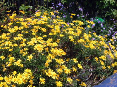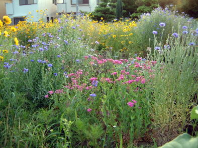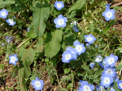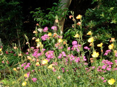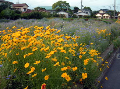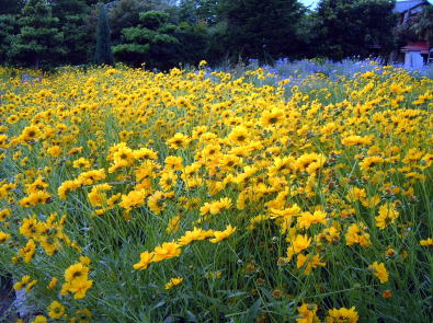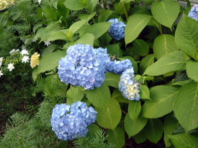 白い紫陽花もとてもさわやかです。先日夕方に撮影した場所の紫陽花とミニバラをまだ陽が残っている時間帯に撮影したのですが、あの美しさは写真では上手に表現できませんね。お花畑の黄色い花もきれいですが、私はブルーの花が魅惑的で大好きです。(2006年6月4日・夕方撮影)