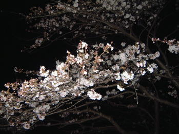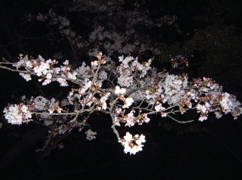 桜はほぼ満開に近い状態です。この夜は非常に寒かったのですが、桜は先週の暖かい日差しの中でしっかりと美しい花を咲かせておりました。昼間見たらまたひと味もふた味も違った美しさと凛々しさを見せてくれるのではないでしょうか。