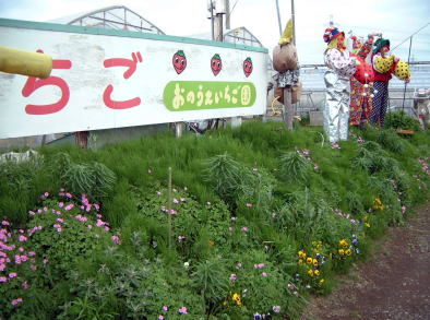 海老名市で生前の父が入院していた宮澤病院のすぐそばには、いちごの直売所がいくつもあります。海老名市はいちごの栽培で有名なのです。知り合いのいちごのビニールハウスを見せてもらったことがありますが、中は見事でした。芝桜もまだきれいに咲いておりました。(2006年5月10日・午後撮影)