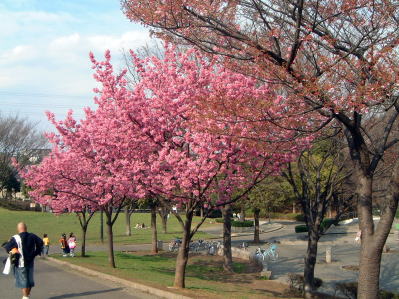 本当は「横浜清風高校杯」というソフトボールの試合を見に行った、保土ヶ谷の清水が丘公園でしたが、公園内の桜の美しさには目を見張ってしまいました。お陰で、ソフトボールの試合を撮影した写真よりも、桜の花を撮影した写真の方が多かったくらいです。私は白い桜も好きですが、このピンク色のあでやかな桜が大好きです。これは花びらの感じからすると、八重桜でしょうか。この時期にもう満開になってしまうなんて。(2006年3月30日午後撮影)