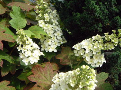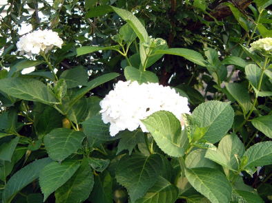 伊勢原のTさんからいただいたクレマチスの花がこんなにきれいに咲きました。本当に美しい可憐な花です。紫色のクレマチスもありますが、やはり白は清楚でいいですね。庭の紫陽花もこんなに青々と茂っています。柏葉はまた一段と株を大きくしました。最後の写真はライラックです。