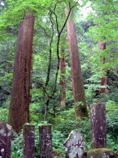 杉の古木の根元には、びっしりと素晴らしい緑色の苔がむしていて、杉木立の間を歩いているだけで、マイナスイオンに満ちたきれいな空気が肺の中に静に入ってくるのを感じることができました。「癒される」という言葉がぴったりの場所なのです。