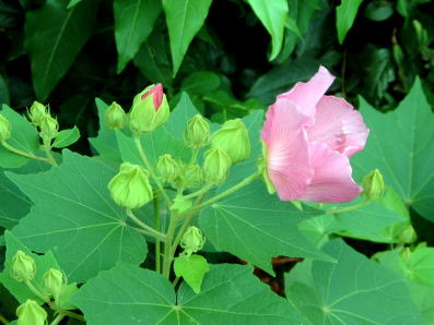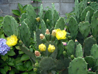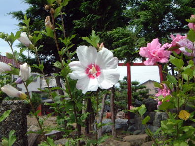 芙蓉の花がきれいに咲いています。我が家の近所はピンク色、そして多く見かけるのは白の花に赤の芯の花ですね。散歩の途中で、遅ればせで咲いた白い紫陽花を見つけました。これにほんの少し青が入るとものすごくきれいな幻想的な花になります。今度、そういう株をこっそりお裾分けしてもらって来ましょうかね。サボテンの黄色い花はちょっと珍しいですね。あるマンションの片隅に小さな竹林の空間が築かれていました。ちょっとした風情ではありますが、やはり人工の空間は何かが違うのですよね。(2006年7月10日・朝撮影)