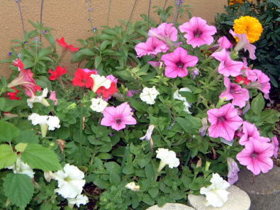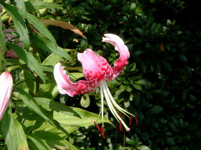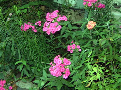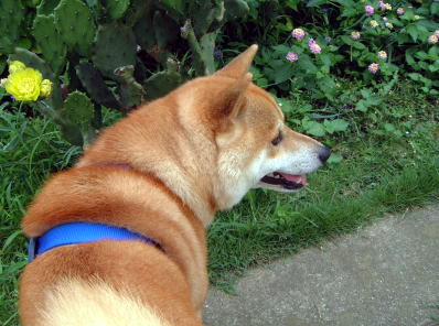 龍馬の散歩の途中でよく通りかかるあるお宅の庭は、とてもきれいにレイアウトされています。自然の姿をできるだけ再現しようとした植物の配置と、花の色の組み合わせが絶妙なのです。我が家もうちにしかない独特な庭造りをしたくなってきました。(2006年8月1日・夕方撮影)