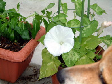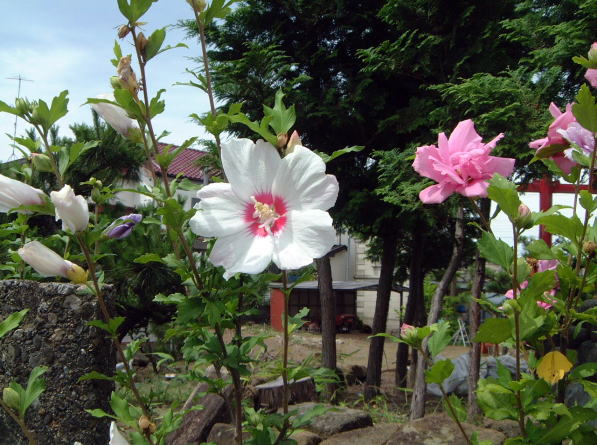 最後の我が家の庭の芙蓉だけがちょっとピンぼけになってしまいましたね。柏葉紫陽花は咲き終えてこんな色になりましたという報告です。その他の花々は龍馬の散歩のときに出会った花たちばかり。妻が一番気に入ったのは日本的な色合いの朝顔。(2006年7月17日・朝撮影)