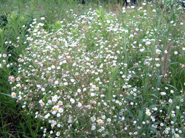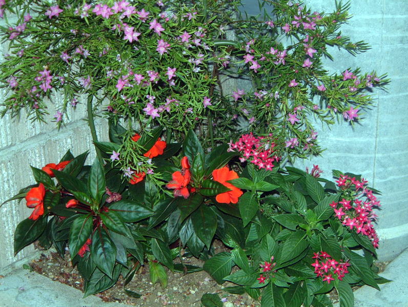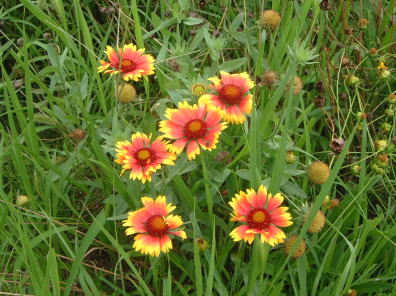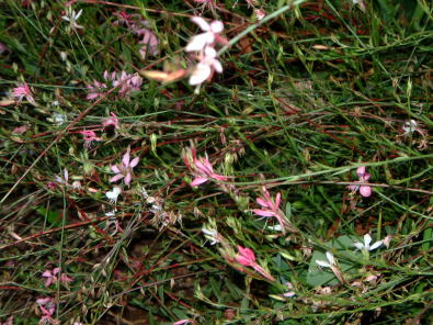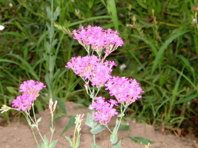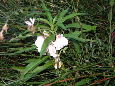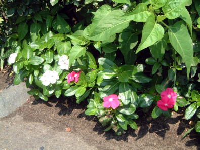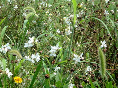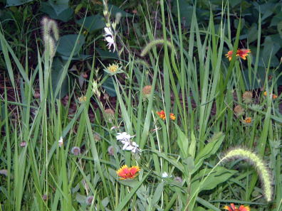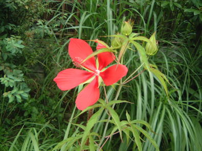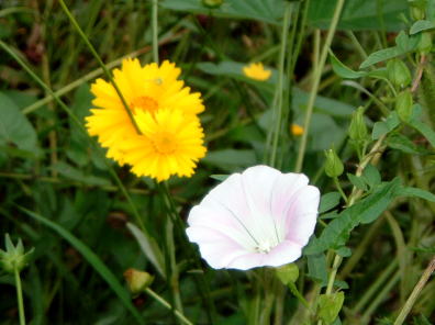各家庭の鉢植えの花もとても美しいと思いますが、やはり自然に繁殖している花々ほど美しいものはありません。何という名前なのかわからない花もたくさんありますが、緑の葉と花の色の調和が何とも素晴らしい。写真では再現できない繊細な世界です。(2006年8月2日・朝撮影)