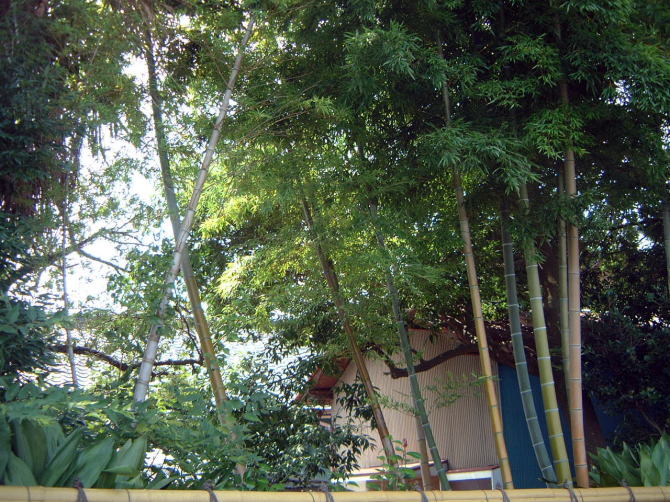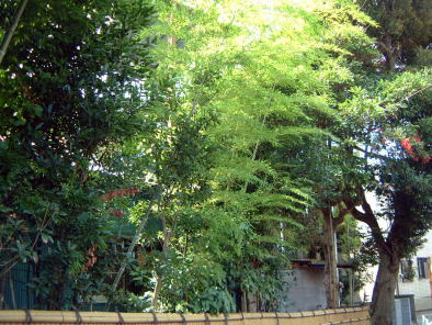 やはり夏は竹林ですね。最近山間部では孟宗竹が急激に増加してしまって他の植物を駆逐しつつあるというので問題になっているそうですが、どんな竹にしても、竹林のそばを歩くと気持ちがすうっと癒される感じがします。これはきっと日本人の脳に、共通にインプットされた祖先の記憶なのではないでしょうか。私たちは以前、京都の嵯峨野の竹林を歩いたことがありますがそれはそれは見事でした。ただ、私の住んでいる松林地区では竹林はそんなに多くは見られません。ですからたまに見かける竹林は、どんなに小さくてもとても貴重に感じます。もちろん、少し赤羽根山の近くに行けば、竹林は豊富にあるとは思いますがね。