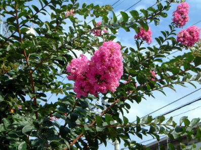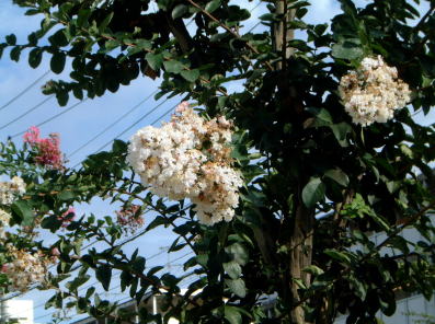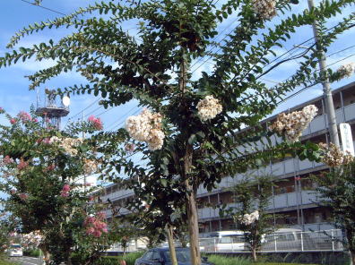 サルスベリはもっと早く撮影すれば良かったのですがね。とてもきれいな花が白・ピンク・濃桃など様々な色を楽しませてくれておりました。今日はもう終わりかけの花しか撮影できませんでした。でも、今年の夏は時季はずれの花が咲いたりしていますから、もしかしたらどこか別の場所でまだ旬のサルスベリを撮影できるかも知れません。バイクで出かけたときに、いつでもデジカメを持ち歩いて、いい写真が撮れるように努力してみます。(2006年8月20日・昼過ぎ撮影)