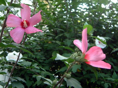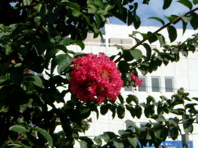 何という名前の花なのでしょう。どなたか知っていらっしゃったらメールで教えてください。私はやはりピンク色の花に心が惹かれます。サルスベリの花もとてもきれいですね。ゆっくり花を観賞したりする時間が少ない現代にあって、やはり花は心を癒してくれる大切な存在です。(2006年7月28日・夕方撮影)