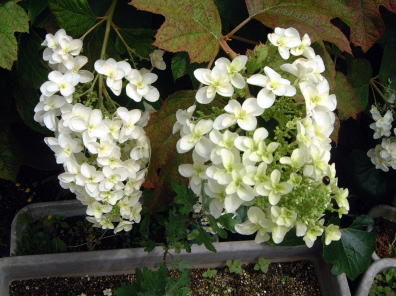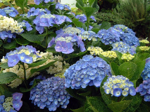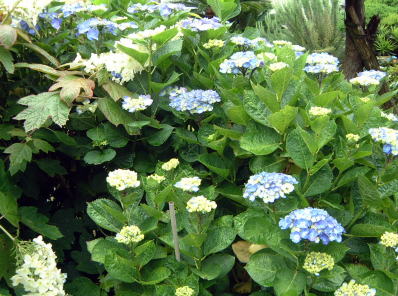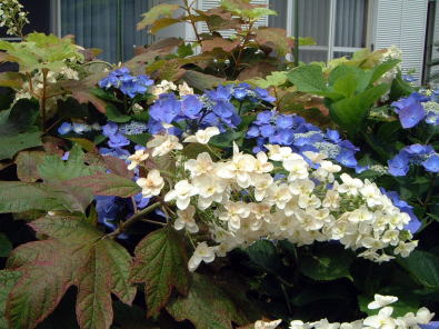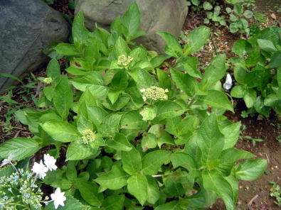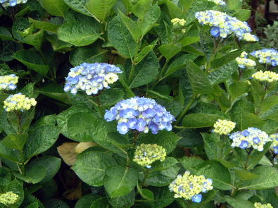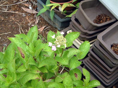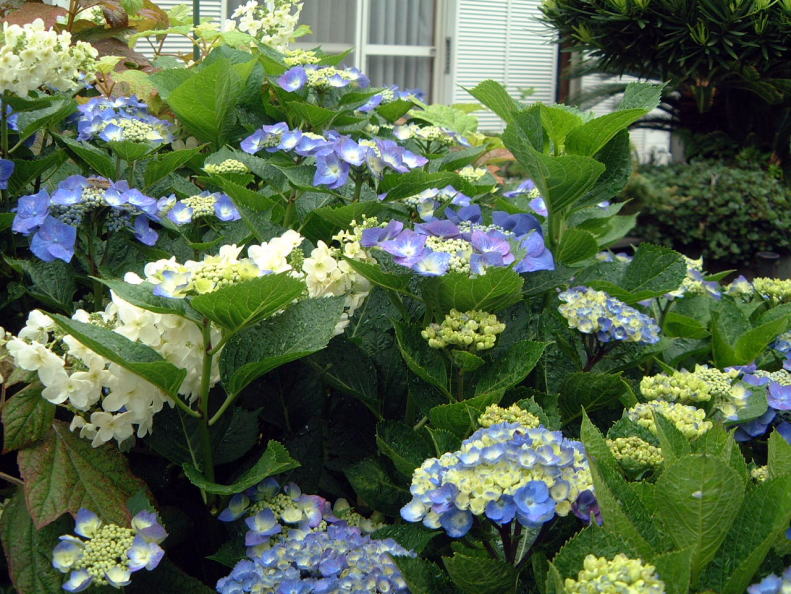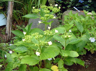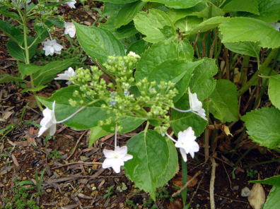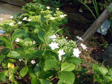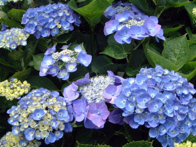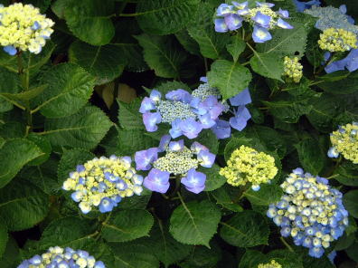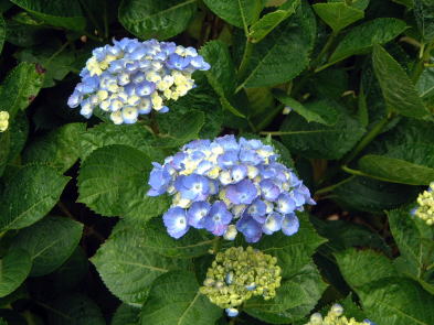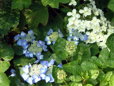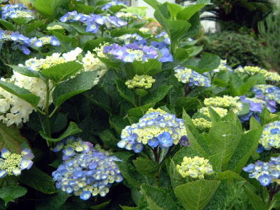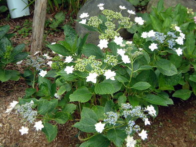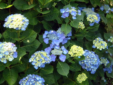 我が家の庭の紫陽花たちです。今年は5月に冷たい雨が降ったこともあって紫陽花の開花がいまひとつのようです。小田原の開成町で昨日まで開催されていた恒例の「あじさい祭」も3月下旬の予想外の遅霜の影響もあって、今年は去年に増して寂しいお祭りになってしまったようです。我が家の庭では相変わらず柏葉紫陽花が絶好調。そのお隣のブルーマリンや額紫陽花もきれいな青い花を咲かせて、そのコンビネーションが何とも言えない美しさを誇っています。まだまだ満開ではないので、これからが更に楽しみですね。その他の小さな株は、まだ昨年鉢から植え替えたばかりなので、今年はもうひとつ調子が出ないようです。まだ花芽を持ち始めたばかりの株もあれば、小さな花を咲かせているものもあります。これからどこまで開花するのか様子を見てみましょう。(2006年6月12日・朝撮影)