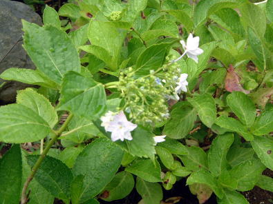 今年の夏は本当にびっくりさせられることが多いですね。台風7号が過ぎ去って真夏の蒸し暑さが戻ったと思ったら、龍馬の散歩道で突然見つけたきれいな紫陽花の花です。どうしてこんな時季に紫陽花が咲くのでしょうね。自然界にはとてつもない異変が起きているのでしょうか。(2006年8月10日・夕方撮影)