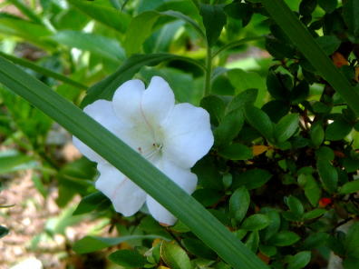 変わった配色の花があったので、思わずシャッターを押したのですが、やはり夕方フラッシュをたいて撮影する花の写真は良くありませんね。色が不自然になってしまいます。今度は昼間の太陽光の下で、もっときれいに撮影しましょう。(2006年8月3日・夕方撮影)