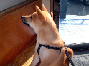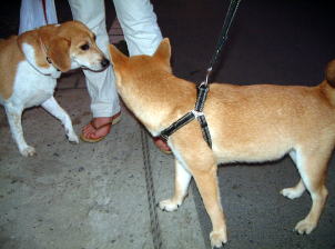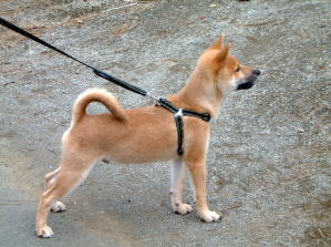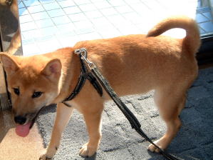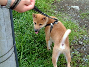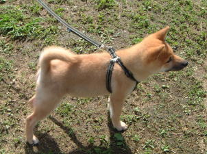 龍馬の初めての散歩の様子です。犬は最初の数ヶ月はいろいろな病気に感染する恐れがあるために、散歩に連れ出すことはできるだけ控えます。そして2度目のワクチン接種が終わってから少しして、初デビューとなるのです。龍馬はこの頃からハーネスをされるのを嫌がっていたようですね。でも、外に出るともう興味の対象があちこちにあって大喜び。それにしてもちっこいなあ。