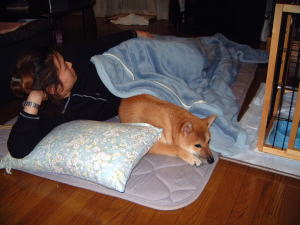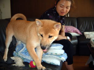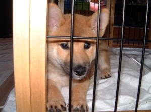 思えばこの頃の龍馬はしょっちゅうお腹をこわして獣医さんのお世話になっていました。家族の中で一番医療費が高かったのは龍馬の分です。そしてちっこかった龍馬は妻の腕の中にも母の腕の中にも簡単に収まっていたのですが、今では体重14キロですから、母や妻は「よいしょ!」というかけ声をかけながら龍馬を抱き上げています。犬の成長とはかくも早いものなのです。本当はあまり早く成長して欲しくないのですが。長生きして欲しいですからね。