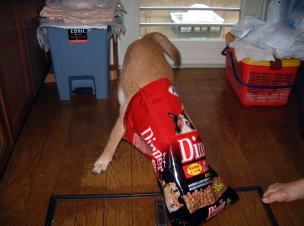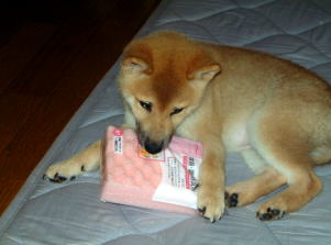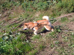 小さな頃からいたずらっ子だった龍馬は、ある日ドッグフードの大きな袋の中の匂いにつられて、ついつい頭を突っ込んでしまいました。袋を頭からかぶった龍馬のパニックぶりは想像に難くないでしょう。スリッパをかじるのが好きだったのも、もうこの頃からなのですね。また、家の中では土をいじることがありませんから、外に散歩に出たときには喜んで土を掘り返そうとします。足は汚れてもそれが自然なので、好きなように穴を掘らせてあげることにしていました。