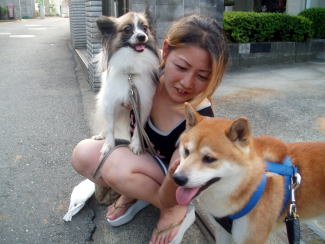 この夏にしっかりと学習した龍馬のくつろぎ方です。扇風機の前に陣取って、ママにしっかりマッサージしてもらうこと。気持ちよさそうな顔でしょう?母が龍馬と一緒に寝るための布団の上に座っている龍馬にも、ちゃんと扇風機の風が当たっているんです。最近の蒸し暑さは尋常ではないので、夕方の散歩に出かける龍馬の足取りもどこか重たげ。でも、仲良しのアロハ君と出会ったらまた元気が復活したようです。そして、夜になればまたママのそばにべったり。ママが優しくマッサージしてくれるのを知っているからです。もちろんパパもマッサージの達人。(2007年7日夜〜9日夜撮影)