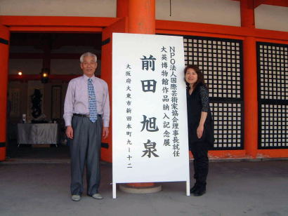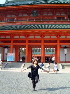 右上の写真は、たまたま書家展を開かれていた、前田旭泉先生と佳代子の記念写真です。私がトイレに行っている間に、ベンチに座っていた佳代子のとなりにちょこんと前田先生が座って、何やら佳代子と親しげに会話を楽しんでおられたのです。そんな有名な方だとは知らずに、招じられるままに書家展の会場を覗きましたら、そこでも中国の有名な書家の方に紹介されました。私たちはとんでもない幸運に恵まれたのでしょう。というよりも、佳代子には人を惹きつける何かがあるのです。私にではなく、妻の佳代子にです。彼女と京都の街を散策していたら、きっとこれからも数々の驚くような出会いが待っているようなわくわくした気持ちにさせられます。